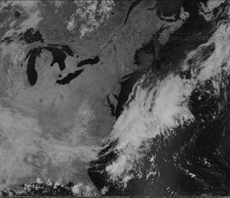 This was actually the first transmission I ever received.1 I’m not entirely sure which satellite it was - the tracker listed it as NOAA-19 and SatDump listed it as NOAA-15. I was so excited about the image that I never corroborated it.